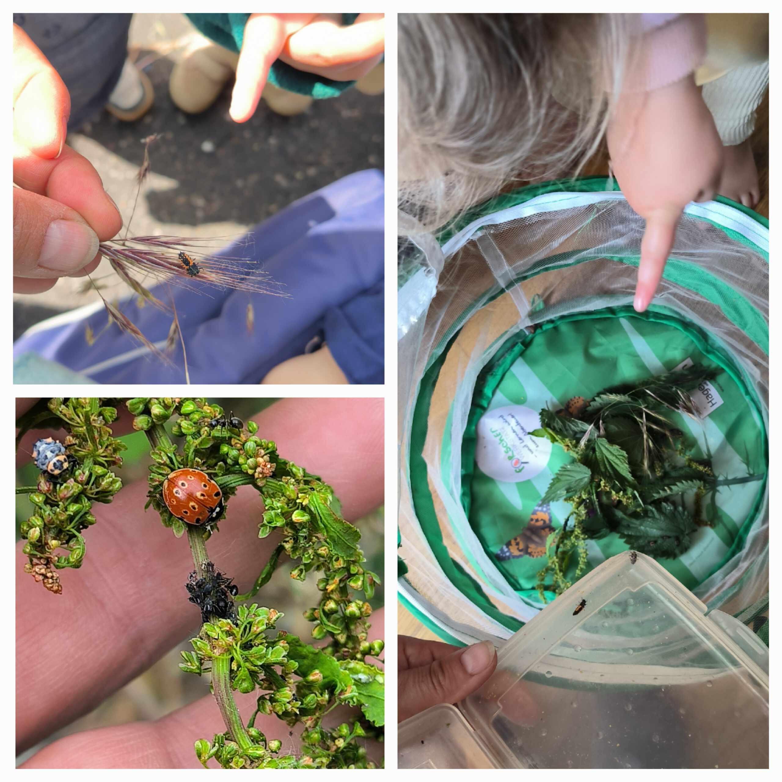 Auf Erkundungsjagd in der Natur der Großstadt sind wir dem Marienkäfer auf der Spur. Die Metamorphose mit den Kindern zu erleben, ist unglaublich: Man sieht, wie diese kleinen Insekten als Larven aus Eiern schlüpfen, über Puppen zu voll entwickelten Käfern werden. Im Ei verbleibt der Marienkäfer ca. 5 Tage, dann macht er sich auf eine ganz besondere metamorphe Reise. Bis er dann erwachsen ist, dauert es bis zu 60 Tage. Das ist ganz schön lang. Aber sehr spannend, denn er sieht in dieser Zeit als Larve immer wieder komplett anders aus. Das Interesse an „Biologie und Ökologie“ im kleinen Rahmen wird hier gesteckt. Begeistert wurden die Marienkäfer immer wieder im vorübergehenden „Netz-Zuhause“ gesucht, und es wurde geschaut, wie weit die Verwandlung schon vorangeschritten ist. Und es stellte sich immer die Frage, wer wohl den ersten Marienkäfer entdecken wird. Und wer weiß, vielleicht werden im nächsten Jahr bei uns im eigenen Garten im Hof diese kleinen Marienkäfer unsere Blattläuse fressen. Das tun sie nämlich am liebsten.
